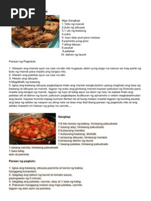 At george eastman house the recipe page do you like cooking. 28012020 Paraan sa Pagluluto Hiwain ang manok sa nais at siguraduhin ito ay nakalinis na at wala nang dugong nakadikit dito. Paghaluin ang karne ng baboy bawang dahon ng laurel paminta at toyo sa kaldero at imarinate ng 30 minuto.